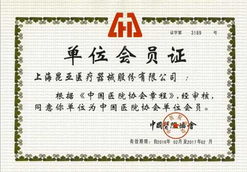 2016年2月,根據(jù)《中國(guó)醫(yī)院協(xié)會(huì)章程》,經(jīng)中國(guó)醫(yī)院協(xié)會(huì)審核通過(guò),昆亞醫(yī)療正式成為中國(guó)醫(yī)院協(xié)會(huì)單位會(huì)員。。